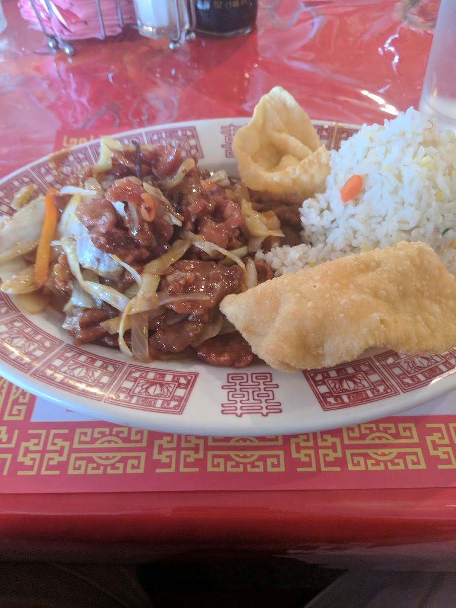 Food was very good. Cream cheese wontons were delicious. I got the beef fried rice and would again. My wife got sweet and sour chicken with white rice fried rice she said it was also very tasty. We will definitely be going back