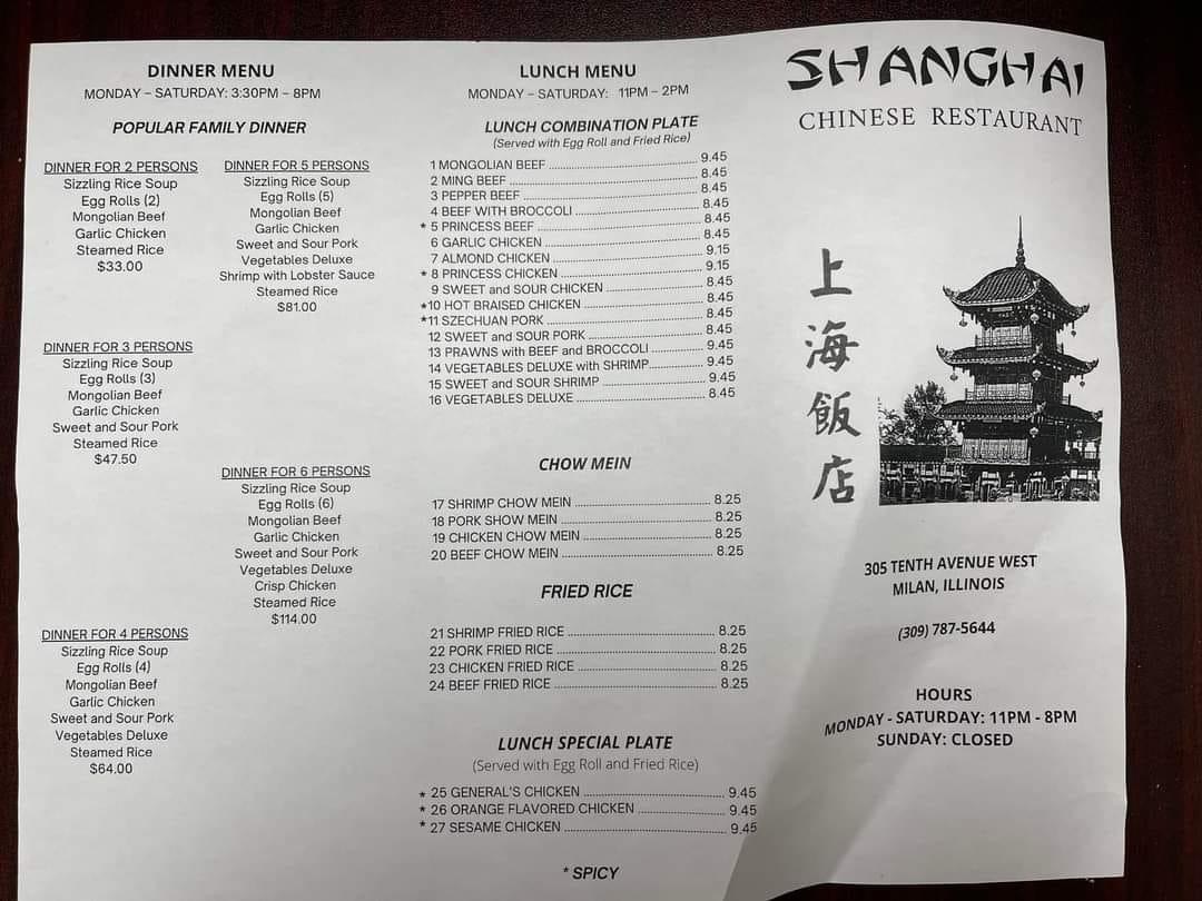 The menu at Shanghai Chinese Restaurant offers a thoughtfully simple selection of classic Chinese dishes that fit well with its casual and welcoming atmosphere. It’s the kind of place where generous portions and familiar flavors bring people together, whether for a relaxed weeknight meal or a laid-back weekend dinner.